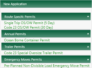 If you are creating an application and do not wish to re-use information from an existing application or permit, then you will choose from the Single Trip or Extended Permit options.