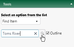 Use the Find Item function to search the database for locations and then to present the results of that search on the map.