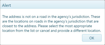 It is likely that the street address you give will not fall directly on a routable road. An alert will appear to tell you when this is the case. Click the OK button to acknowledge the alert.