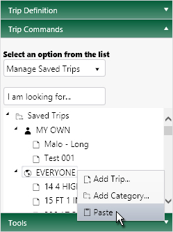 Right-click on the name of the folder into which you wish to place the chosen trip and choose Paste from the context menu.