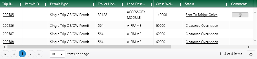 Each row in the table presents information from a permit or application. Click anywhere in a row to impart selected status to that record.