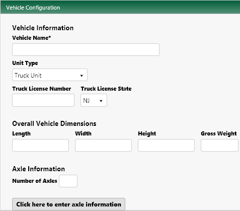 Open the My Vehicles page to create or edit information about the trucks and trailers you will use to haul loads that require a permit.