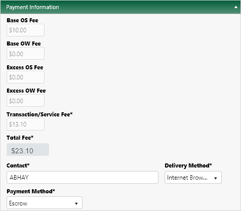 On the Payment Information panel, the fees that apply to your application are listed along with the Total Fee required.